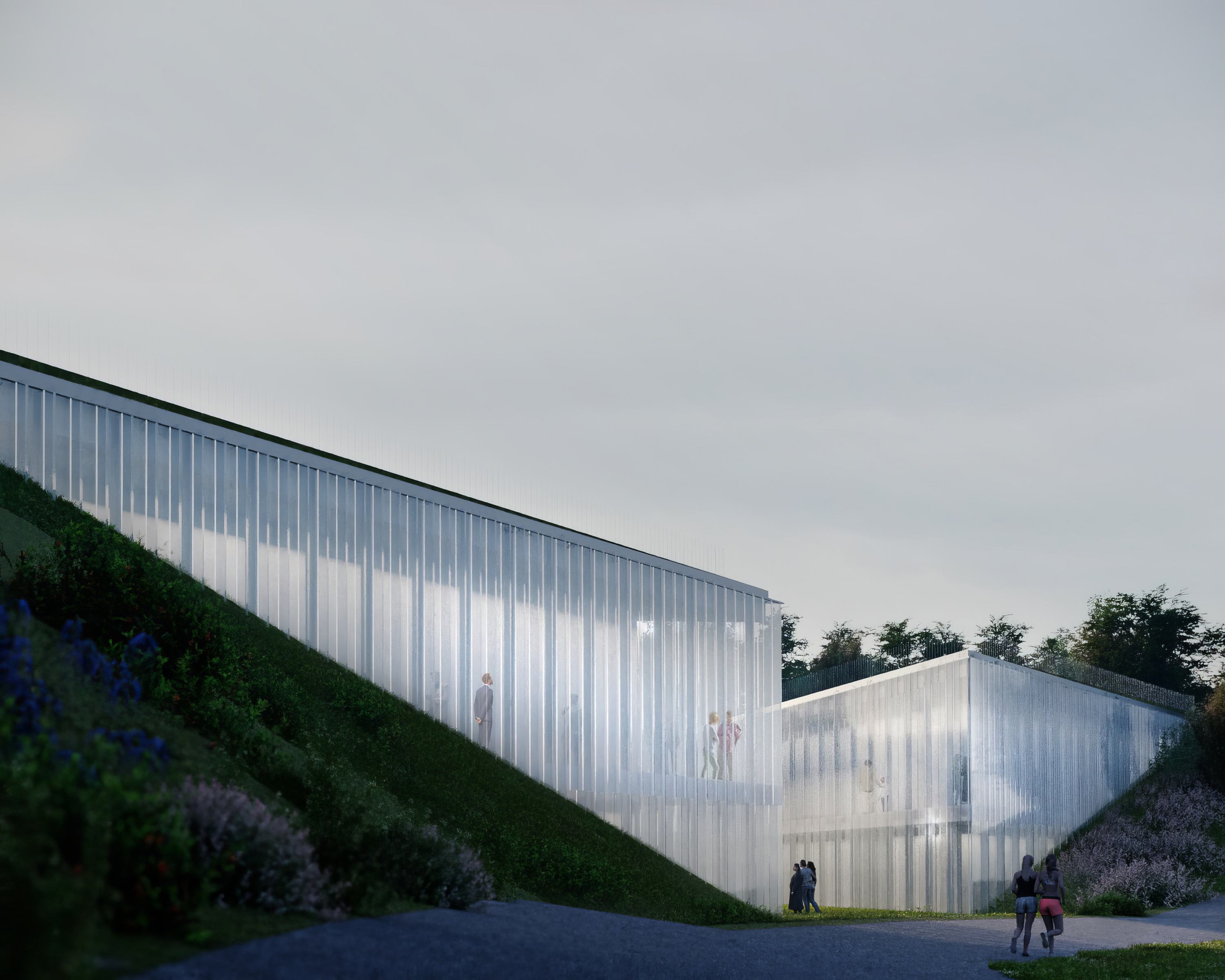 • Embedded Architecture: The museum is embedded into the landscape, reducing its visual mass and allowing the rooflines to become extensions of the ground.